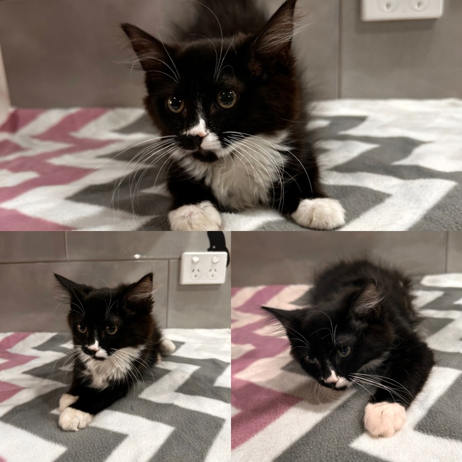 Alfred is a beautiful medium-haired black and white kitten with the fluffiest coat and the softest heart ✨🐾. He can seem a little unsure when meeting new people at first — the world is still a big, scary place for this sweet boy 🌍💭. But once you scoop him up and cradle him close 🤍🤲, Alfred completely melts, settling into your arms and purring his heart out 💕🎶. He’s a gentle soul who just needs reassurance, patience, and lots of love to feel safe 🌱😽. In the right home, Alfred will blossom into the most affectionate, cuddly companion 🏡💖.