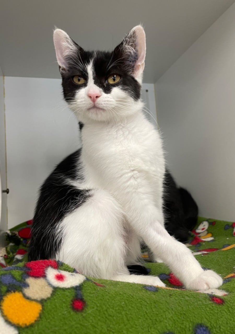 Panda Express is a gentle little soul with a name that perfectly matches her charm, soft, sweet, and full of personality once she warms up. At first, this tuxedo cutie may take a moment to size up her surroundings, preferring to observe from a cozy corner or safe perch. But give her a bit of patience and a sprinkle of kindness, and you’ll see her shy exterior melt into something wonderfully affectionate.