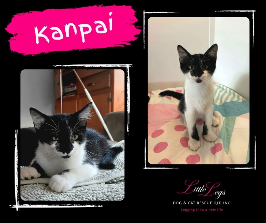 Let us introduce you to the most fabulous kitten Kanpai. This little boy has a black and white coat, cheeky face and a strong body. Kanpai is the epitome of kittenhood - always into mischief, purring, chasing toys, frequent napping and wanting cuddles. He is also the most talkative foster kitten this foster family has met. You ask a question, Kanpai will have an answer for you! He loves his food and is fully litter trained. We know that Kanpai will make the perfect addition to your family.