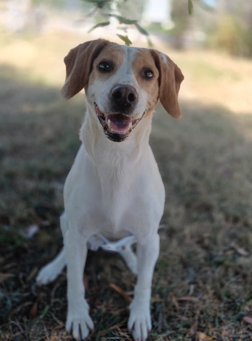 Koda is a lovely-natured female beagle mix with a beautiful white and tan coat and a gentle, affectionate personality. True to her scent hound roots, she loves to follow her nose and explore her surroundings, taking great joy in the little discoveries along the way. She has excellent manners and is a sweet, polite girl who's a pleasure to be around.