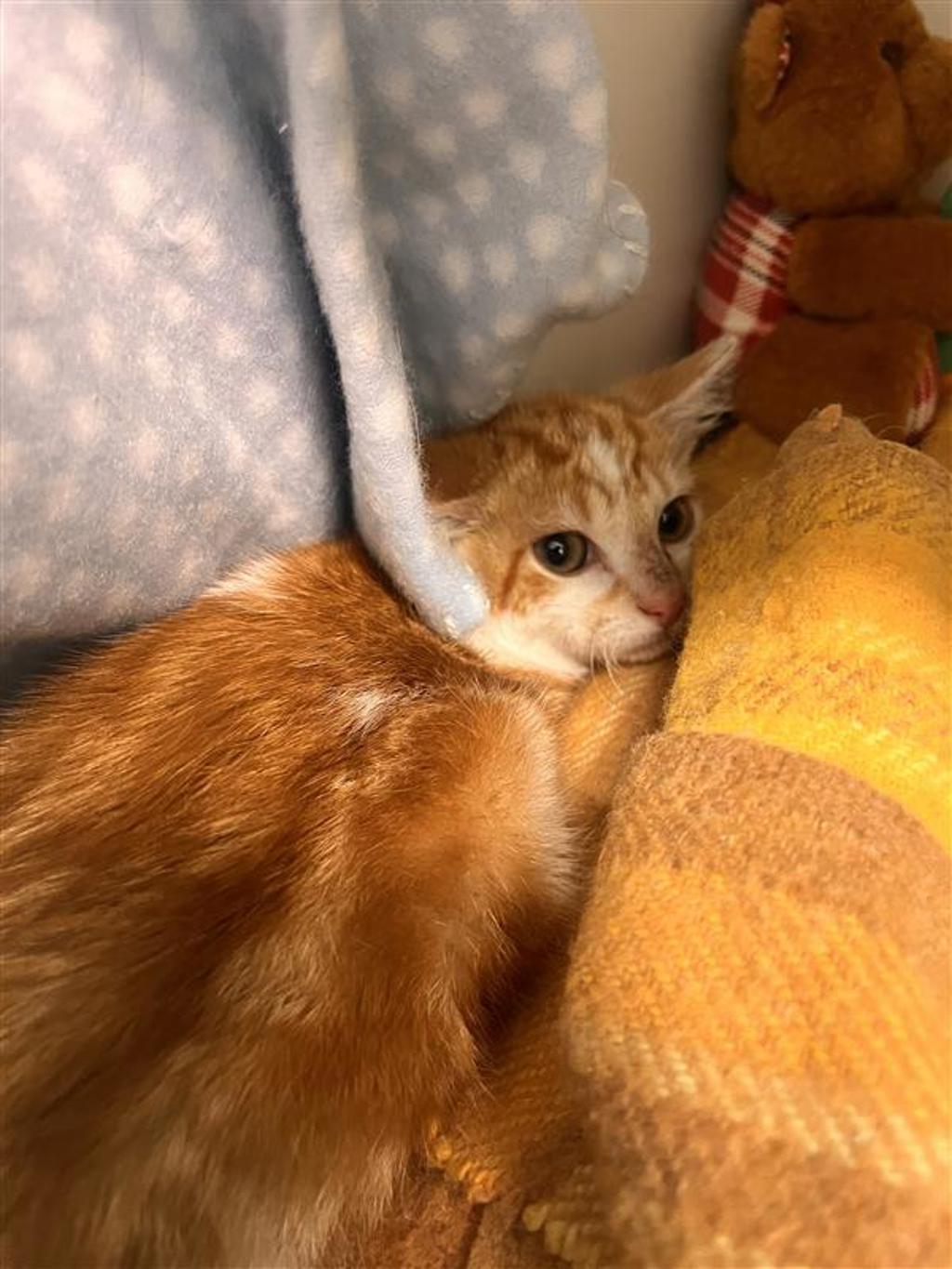 Timid kitten1! Lots of TLC required. Best suited to a calm and quiet home with no young children.