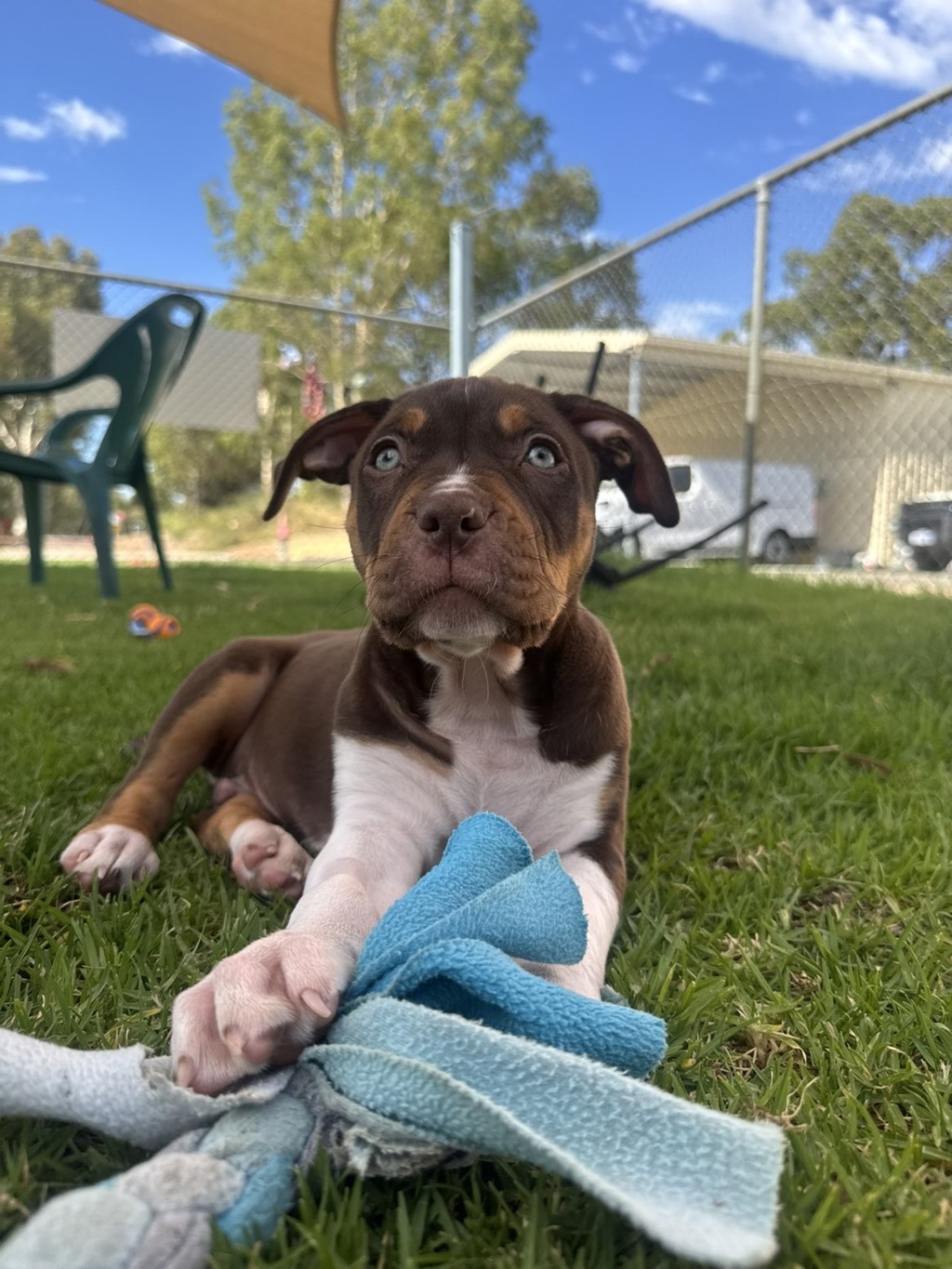 Like most puppies, Toblerone is playful, curious, and continues to learn about the world. She'll benefit from positive reinforcement training, regular exercise, and a family committed to guiding her through puppyhood and adolescence. Early socialisation and ongoing training will be key to helping her become a confident, well-mannered adult dog.