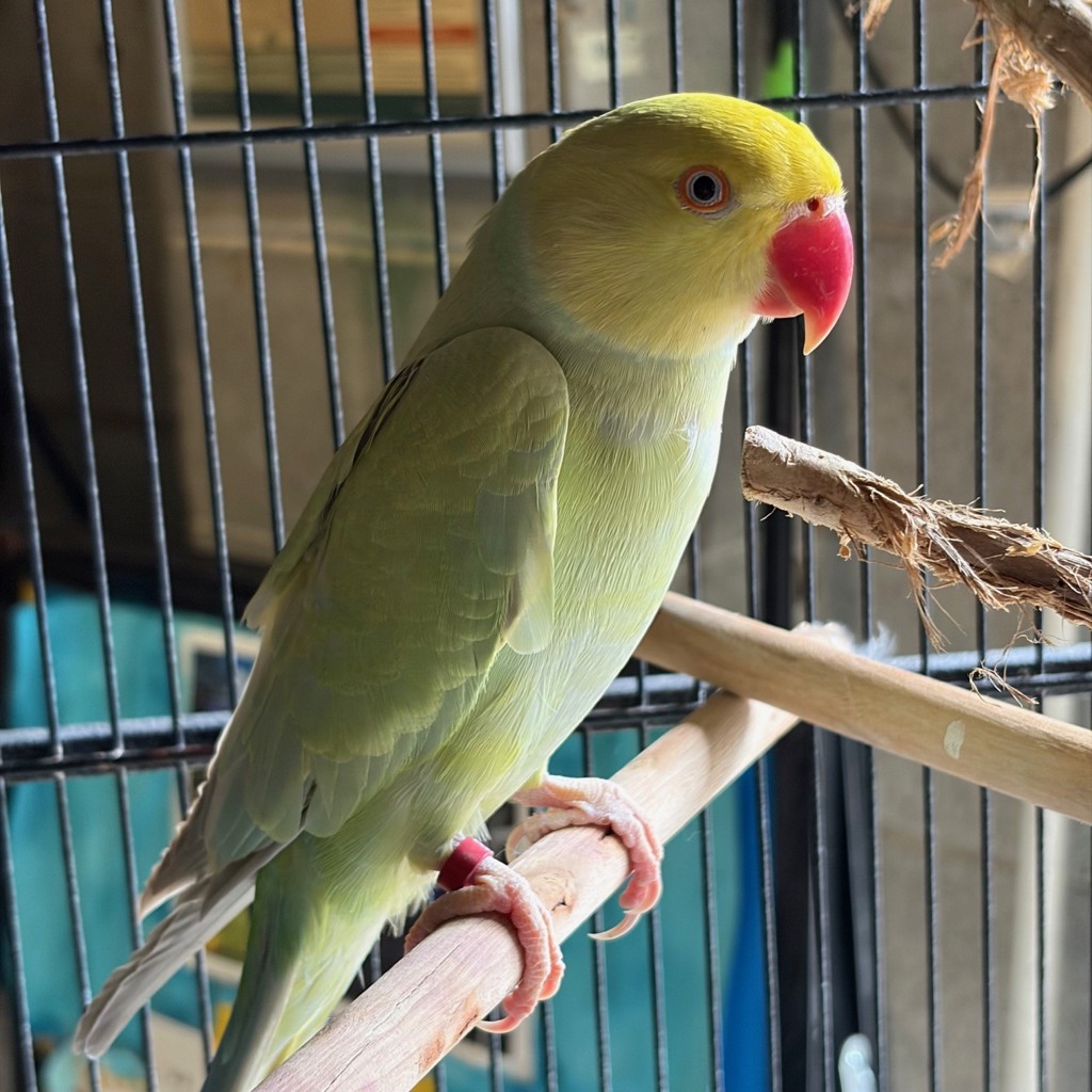 Lilo is a gorgeous 3 year old Indian Ringneck with a gentle, shy nature. She hasn't had much socialisation with people so far, but with patience, consistency, and kindness, she has the potential to slowly build trust and come out of her shell.