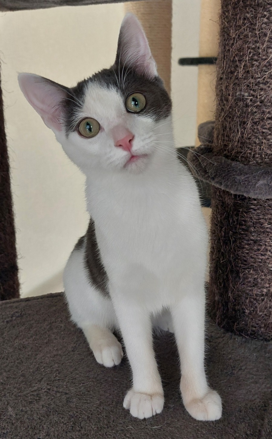 She loves cardboard boxes, and adores wand toys, especially ones with a bell. She is a wonderful mix of loving and playful, and will be the perfect little companion!