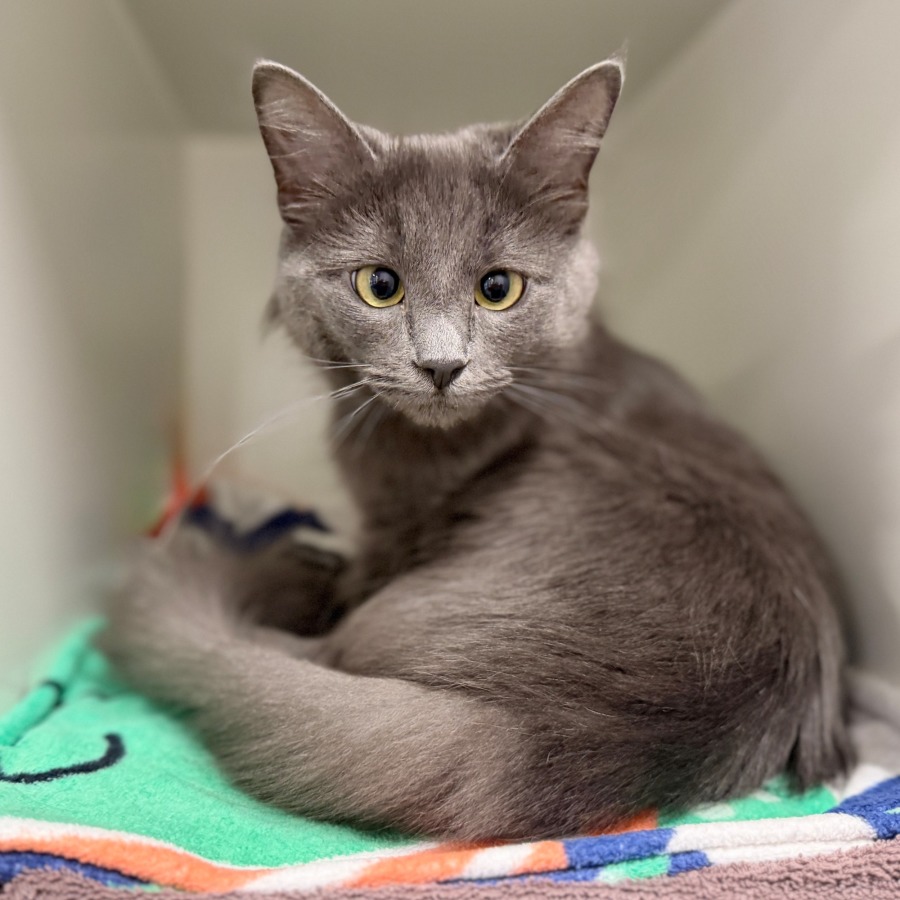 Emmaline is a beautiful grey cat with the softest presence. She’s quiet, gentle, and sweet in a way that makes you slow down just to be near her. Emmaline isn’t one to demand attention, but she deeply appreciates it. A calm voice, a warm lap, or simply sharing a peaceful room is her idea of perfection.