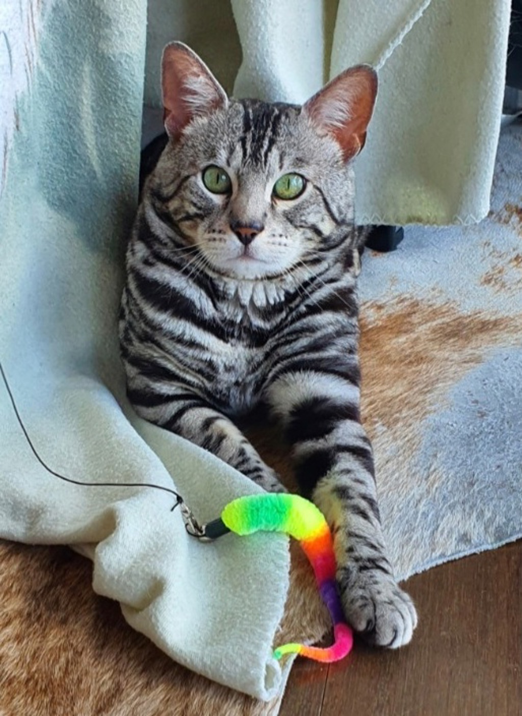 Meet Macaroni Bob! Macaroni Bob is likely to be timid while settling into his new home, but once he feels comfortable he shows his active and playful side. Being a Bengal, he has some breed-specific requirements that will need to be met to ensure he is engaged and feeling his best in the home. Macaroni Bob can show fearful behavior with unfamiliar people & environments- he'll benefit from patience and gentle handling, willing to give him plenty of space and time to settle before engaging in more hands-on interactions. Macaroni Bob would love to go home to an adult only home that has Bengal experience. Treats and play will be the way the Macaroni Bob's heart. If you are looking for a sweet timid boy to bring home and bring him out of her shell, come into the RSPCA Peninsula to meet Macaroni Bob today!