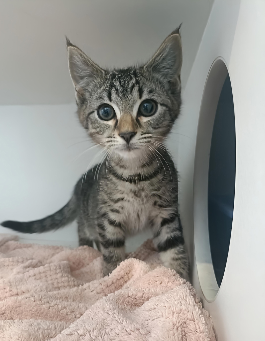 Meet Radley, a handsome tabby boy with a gentle soul and a playful spark. Found as a stray, this sweet male kitten is now discovering how fun and safe indoor life can be. He absolutely loves playtime-especially when there are other kittens around to chase, wrestle, and nap with. Toys, kitten pals, and cozy spots are quickly becoming his favorite things.