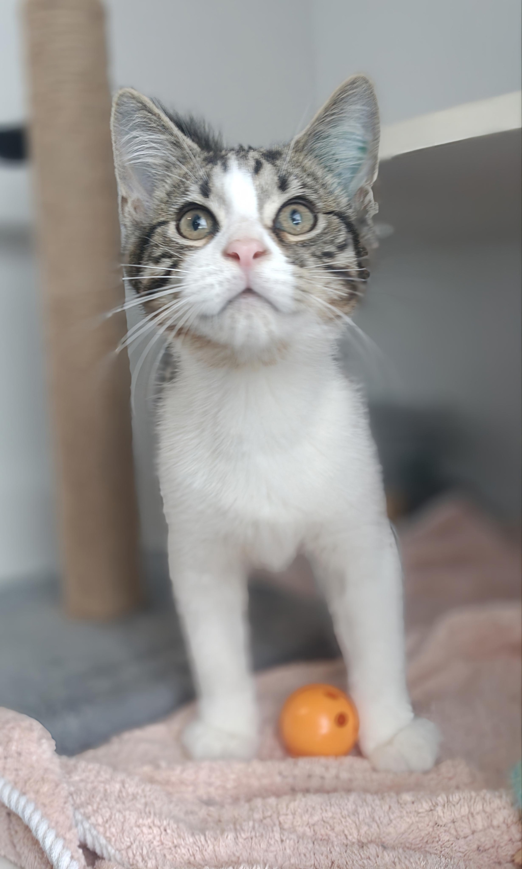 Meet Raymond, a tabby-and-white boy with a huge personality and an even bigger zest for life. Found as a stray, this happy, outgoing kitten hasn't let his rough start slow him down one bit. Raymond is playful, curious, and always keen to explore his surroundings-nothing fazes him for long, and he approaches the world with confidence and enthusiasm.
