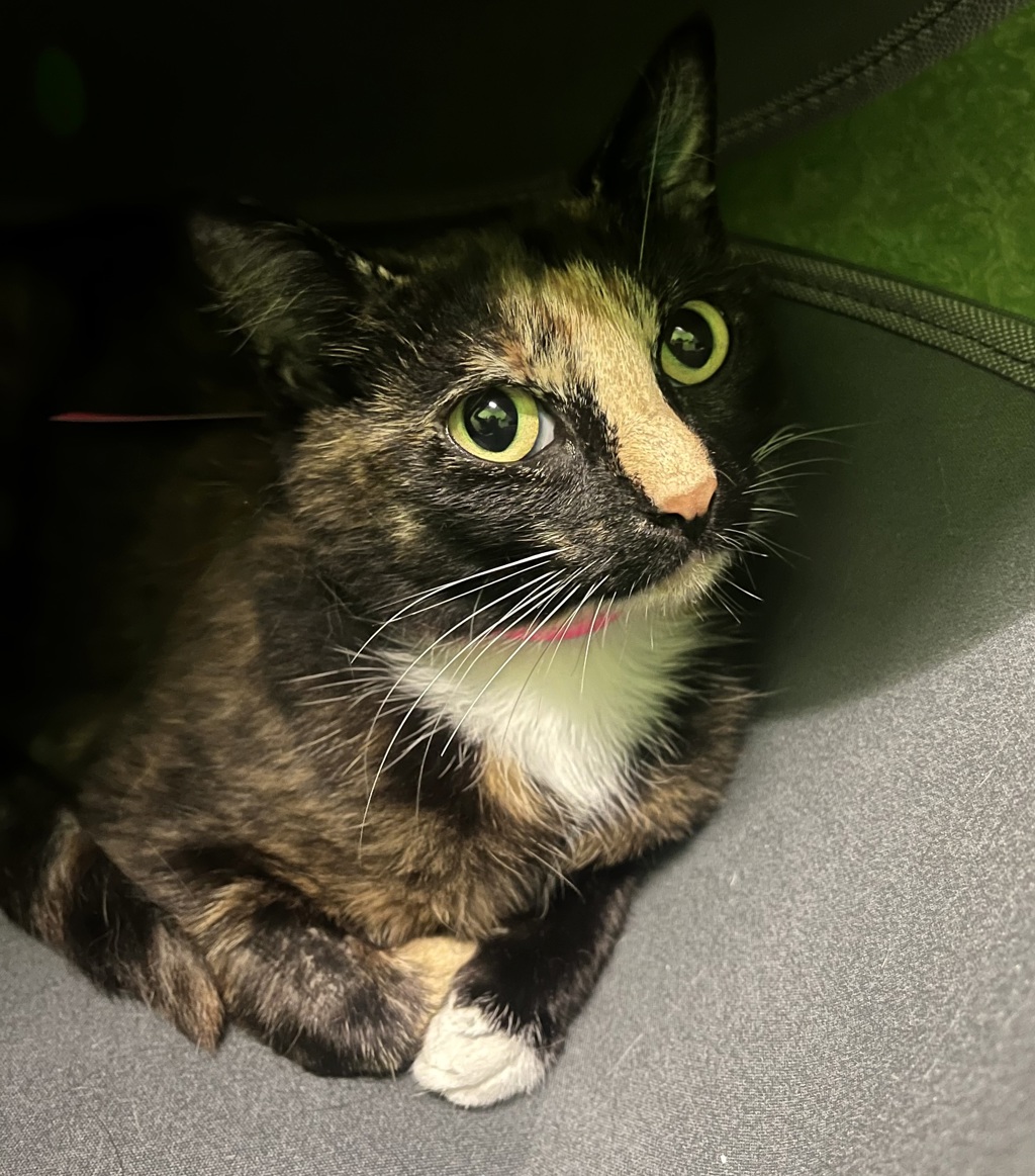 As a young cat, Chocolate Brownie will need enrichment and time to help build her trust. She would thrive in a home with cat-savvy older teens and adults. This sweet girl might also be ok with other cats, with a slow introduction.