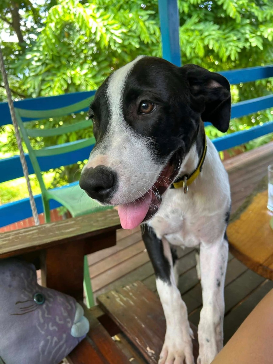 Barkley is learning his basic commands, walks reasonably well on lead, and his recall is improving. He is mostly house trained, though he’s still polishing his manners and can’t yet be trusted around unattended food — those long legs already know their way onto kitchen counters, and he’s been caught in a few cheeky situations!
