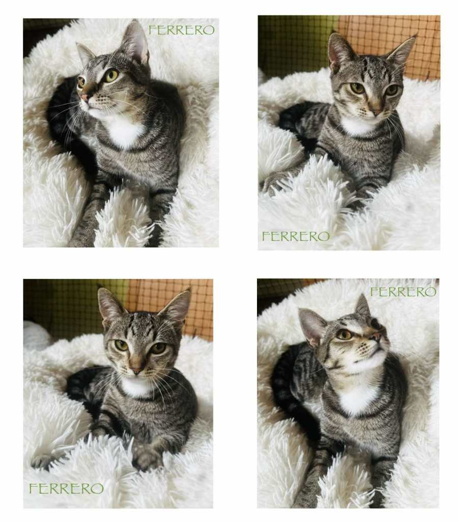 Ferrero matches Rocky’s energy perfectly, bringing his own charm and sparkle to the duo. He’s a handsome tabby with bright eyes and a playful, confident personality. Ferrero loves to pounce, climb, and investigate every corner of his world, often with Rocky right by his side. He’s friendly, social, and enjoys making new friends - human and feline alike. After a busy day, he’s more than happy to settle in for a cosy nap and some well-deserved head scratches.