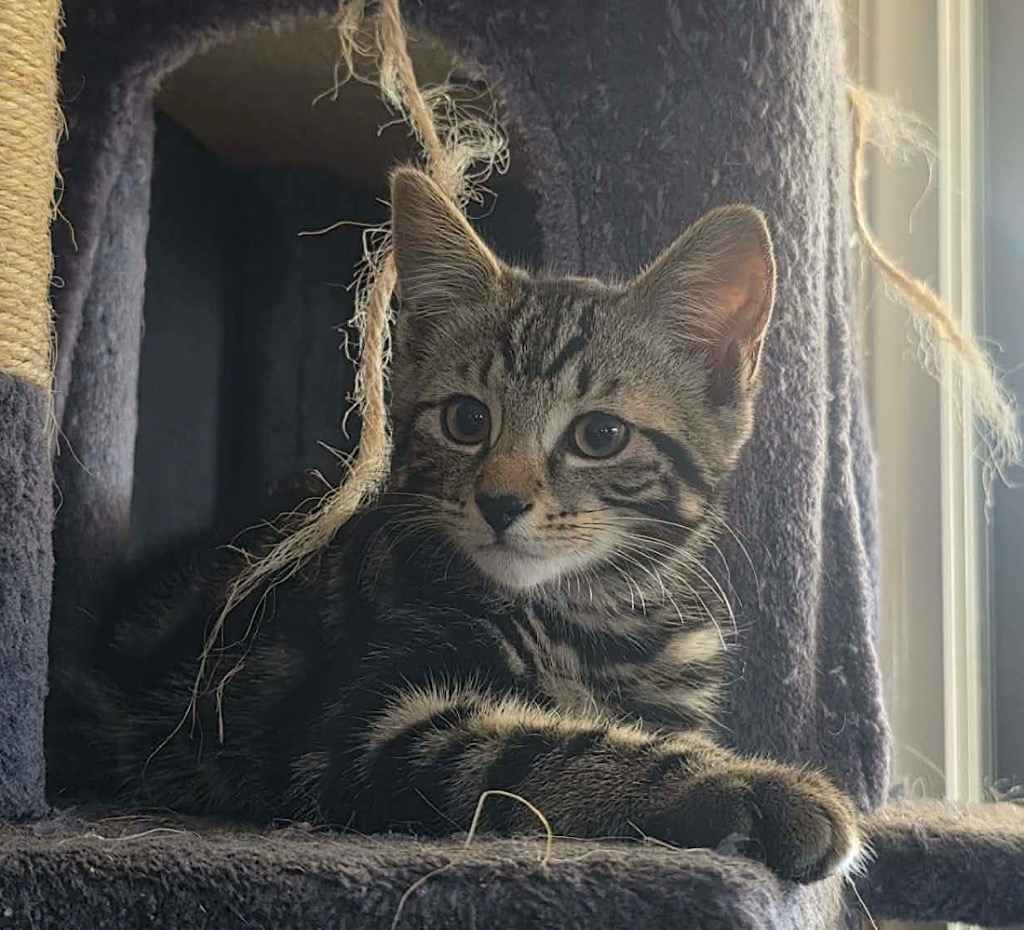 PERSONALITY. He’s a little more shy than the other kittens in his foster home but very loving once he’s comfortable.