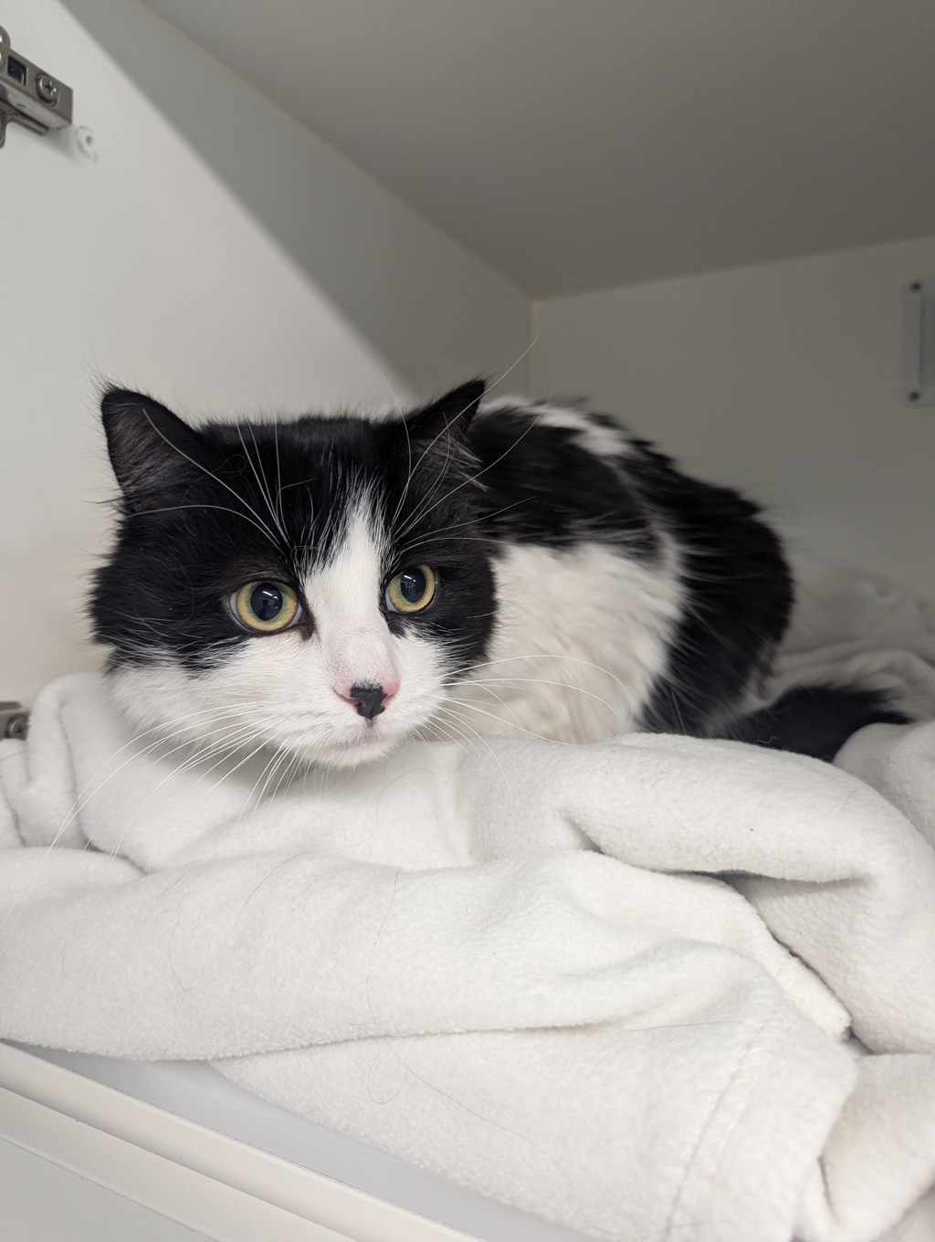 He has been a little shy in the shelter environment, but don't let that fool you. In a home, Oreo blossoms into a fun-loving loaf of pure adorableness. He is an indoor-only cat, fully litter trained, and described best as a big teddy bear just waiting for his special family.