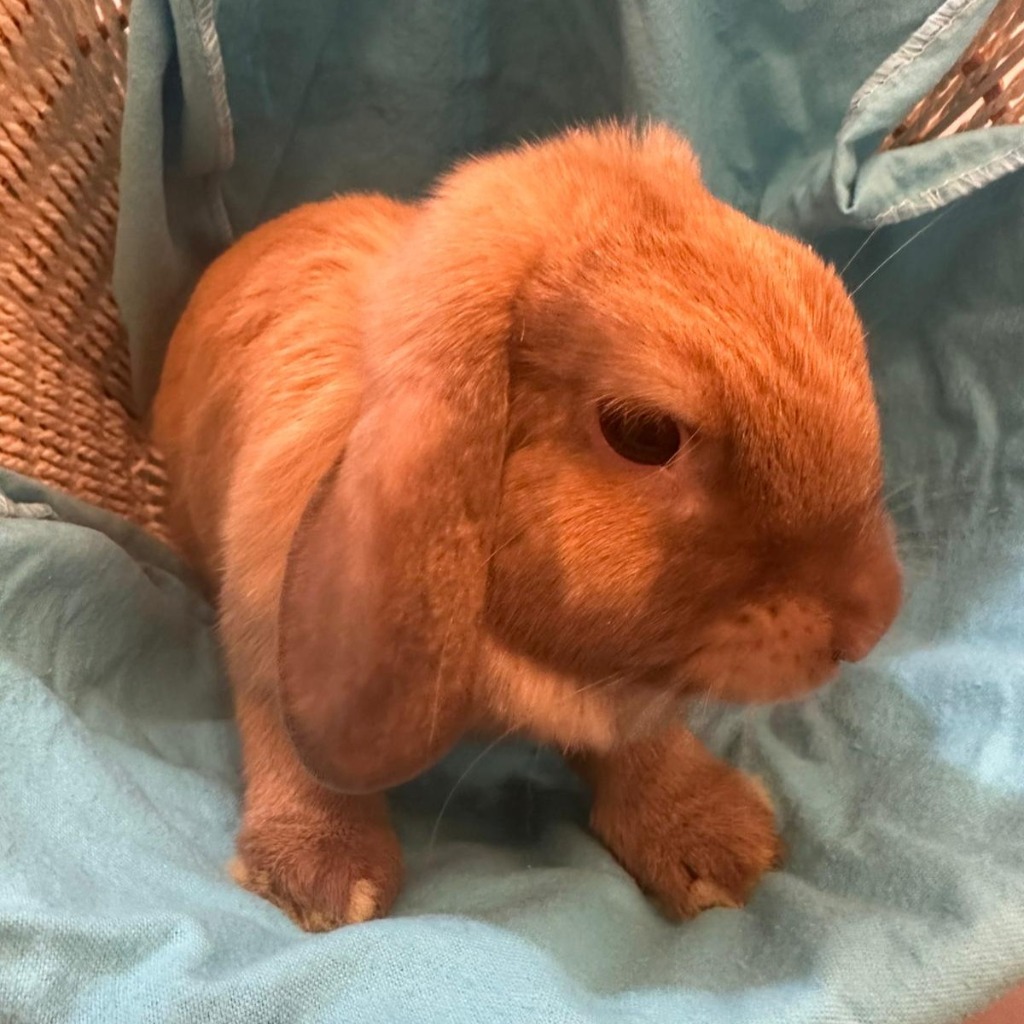 She’s grown up around dogs and gets along well with them, and she’s also used to living with teenagers. While her experience with younger children is unknown, she would likely do best in a calm, respectful home that understands bunny boundaries.