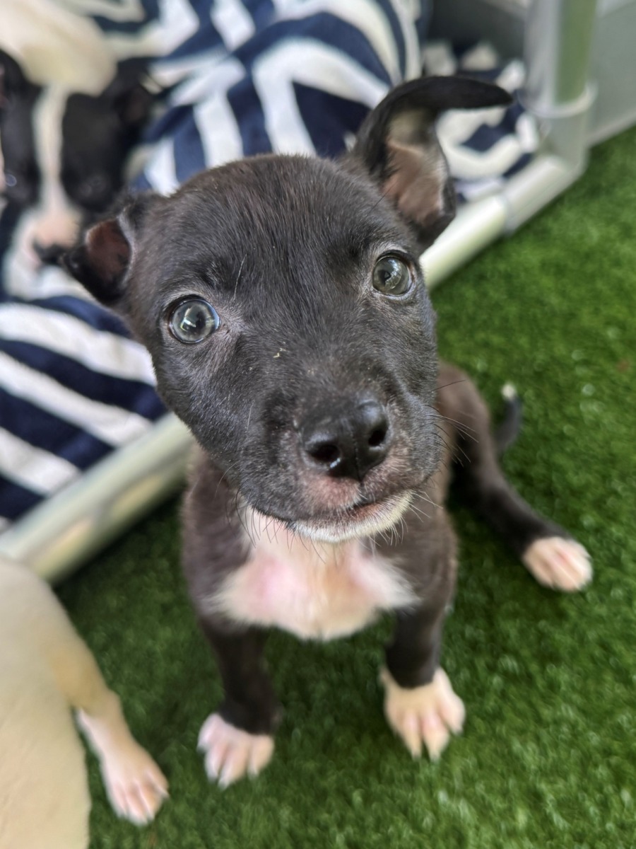 Meet Vincent van Gogh, a one-of-a-kind mixed breed puppy looking for his forever home. Vincent is a young male with a striking black and white coat and just one ear, which only adds to his charm and character.
