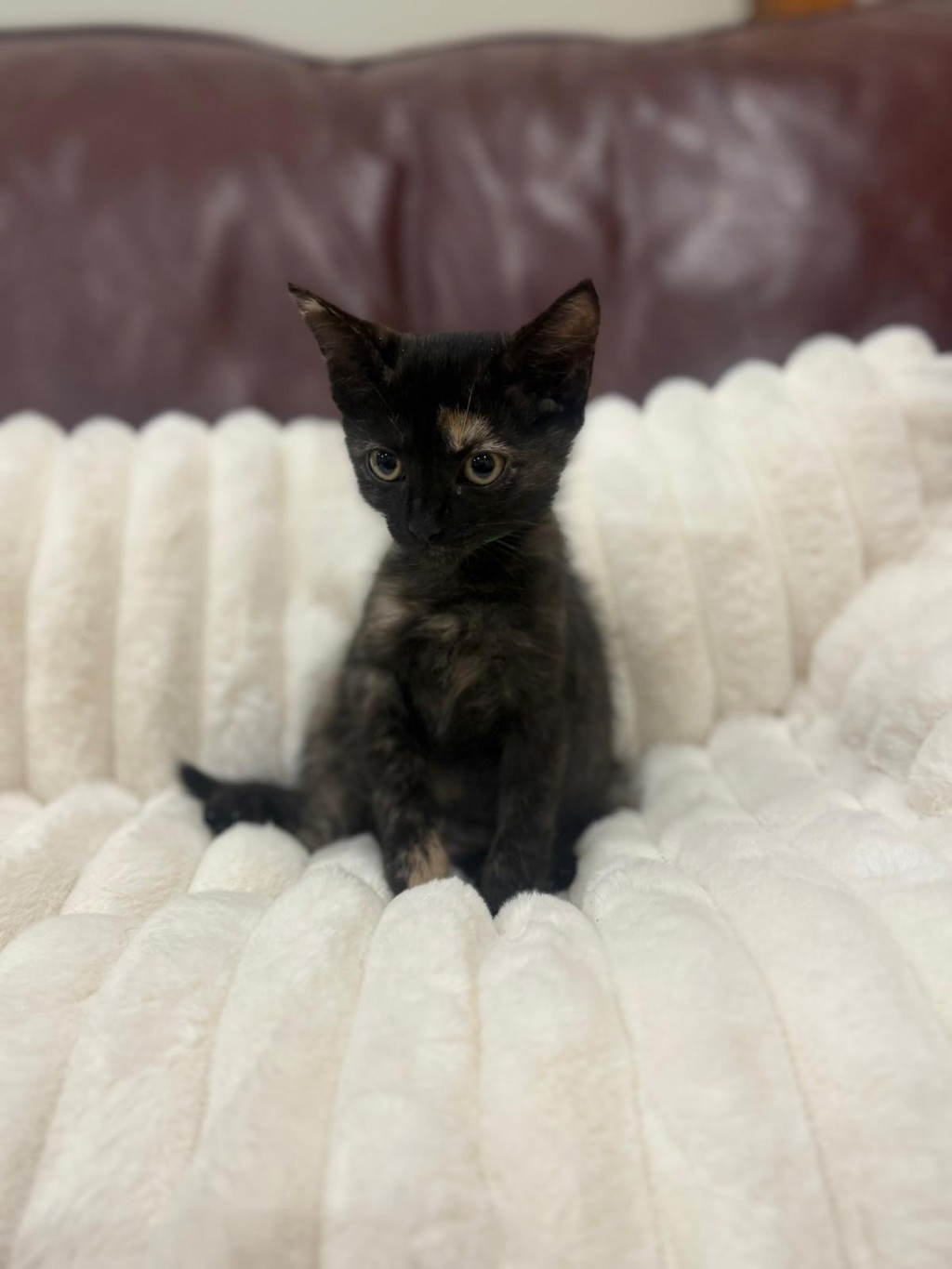 Opal is a quietly confident, independent girl who likes to observe before joining in. She's happy supervising her siblings' antics, with the occasional burst of play when the mood strikes. A little spicy at times, Opal will suit a home that appreciates her thoughtful, independent nature. She would do well with another young cat in the home.