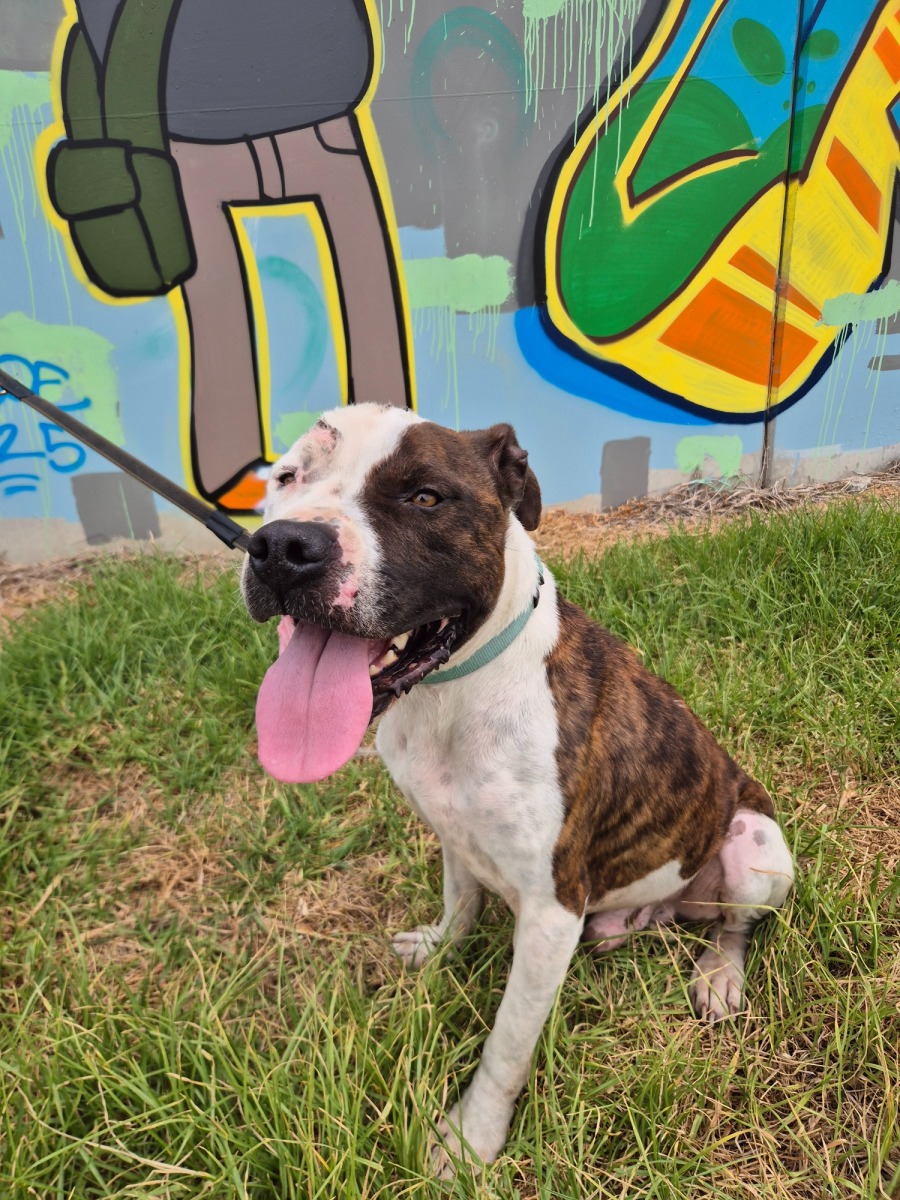 Loki the staffy mix has luckily found himself here at GAWS as he appears to have had a very rough life. Emaciated, unwell and suffering from an infection on his head, he was immediately treated, fed up and comforted. The result has been a settled, calm dog who is affectionate and social with other dogs. Loki has fitted into shelter life easily and is enjoying the routines and care provided here. However, it is a permanent, forever home that he will really appreciate, and he is so deserving it. He has not been tested with cats and his child history is unknown, but his endearing appreciation of the smallest comforts is infectious.