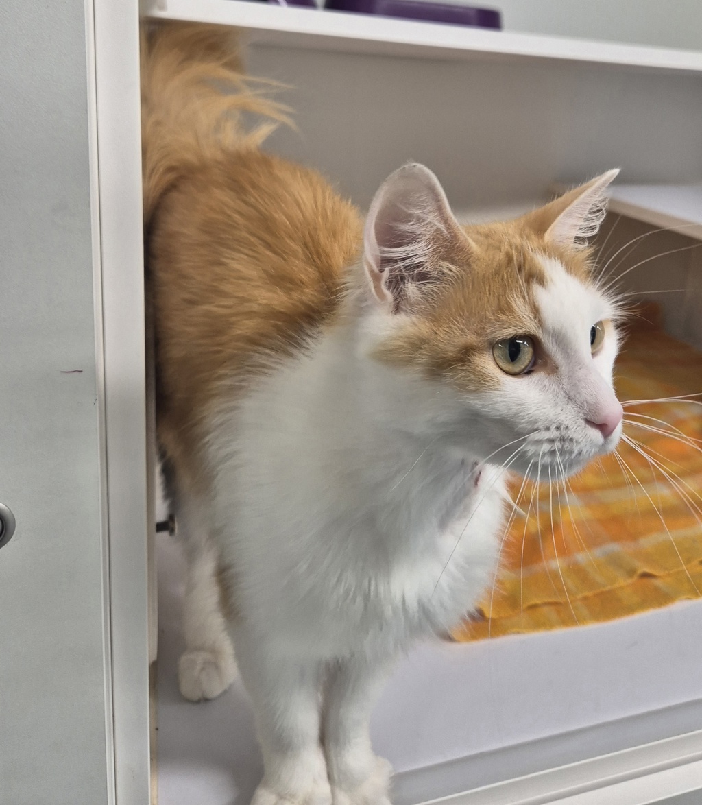At just one year old, she still has that playful, curious spark, balanced perfectly with plenty of cuddle time. Her fluffy ginger-and-white coat makes her extra striking, but it's her sweet, social personality that truly steals the show.