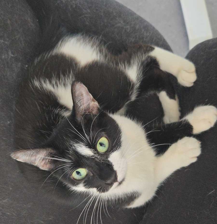 Meet Blinky, a stunning 10-month-old tuxedo cat with a heart of gold and a playful spirit that lights up the room. This beautiful angel blends the perfect balance of playfulness and tranquility. Whether she's chasing a toy mouse or lounging in the sun, Blinky is sure to bring a smile to your face. With her sleek black and white coat and expressive eyes, she's a sight to behold in any household.