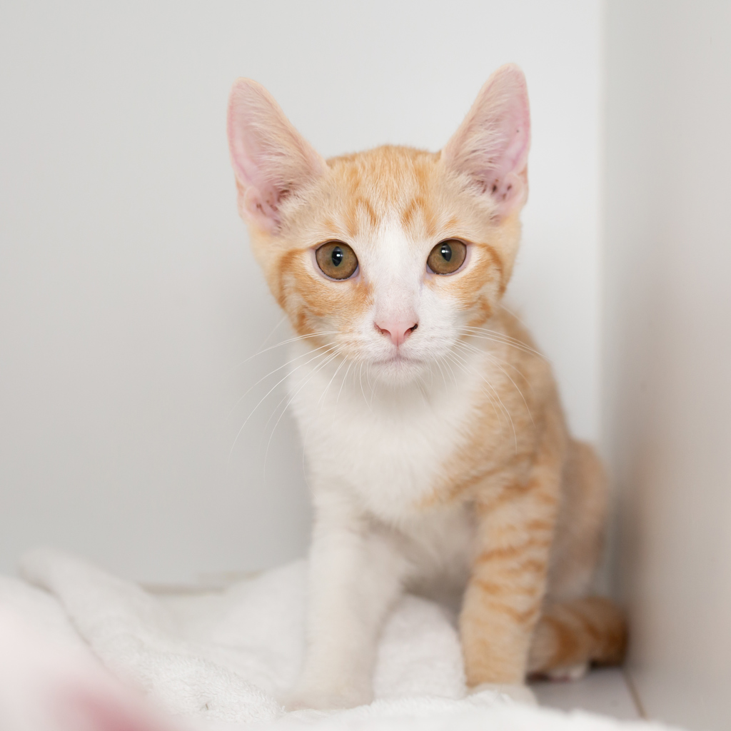 Meet Neo, a 12-week-old ginger and white tabby with a gentle soul and a curious little mind. Neo can be a bit nervous when meeting new people and prefers to take things slowly at first, watching from a safe distance while he figures out what's going on. But don't mistake his caution for disinterest - this kitten has an inquisitive nature and a quiet bravery that shines through as he gains confidence.