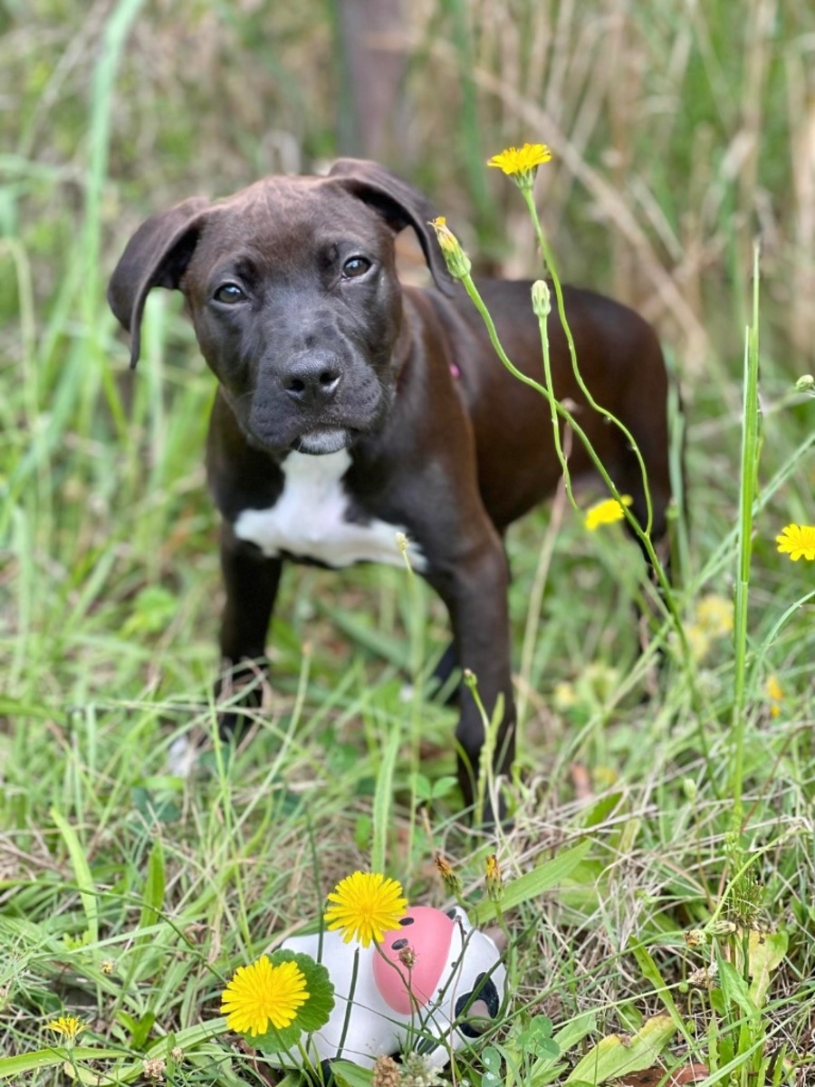 Our little Gracie Girl is an estimated 12wk old Bully style mix. This little girl is smaller than her images would have you believe.