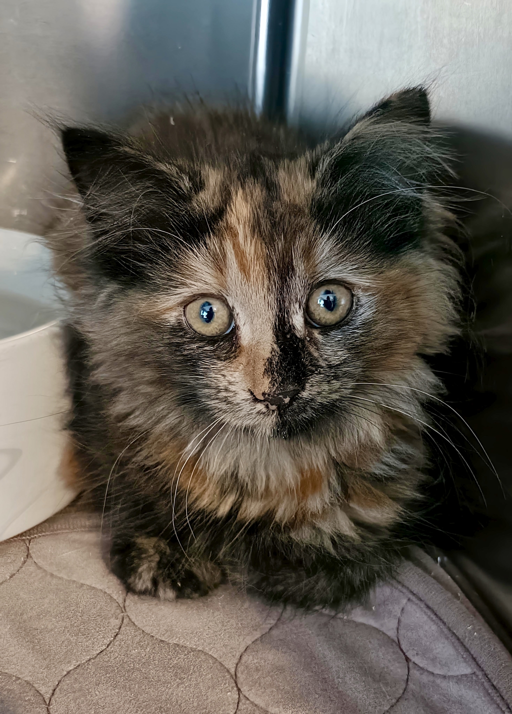 Tessa is a sweet little tortoiseshell kitten who looks pretty as a picture, a tiny fluff ball with beautiful markings and soft, expressive eyes. She can be a little shy at first, but she's gaining confidence every day as she learns to feel safe and secure. Tessa enjoys gentle playtime and cozy spots where she can watch the world and slowly come out of her shell.