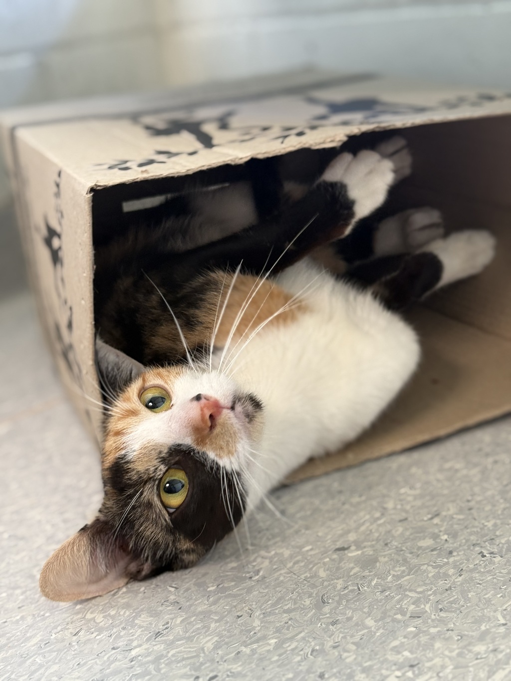 Opal is a wonderfully friendly and affectionate girl who just needs a little time to let her true sweetness shine. With her stunning green eyes and tortoiseshell coat, she will surely attract the attention of many! She may be shy at first, but once she feels safe, her gentle and loving nature comes forward beautifully. She's a great match for inexperienced adopters and would benefit from a calm launch room to help her settle in. Opal is suitable for respectful children of all ages, though she may prefer minimal handling and keeping all four paws on the ground. She could potentially do well in a multi‑cat home with slow, thoughtful introductions. Providing cozy hiding spots-like cat towers, tunnels, or boxes-will help her feel secure as she adjusts. With patience and kindness, Opal will blossom into a truly lovely companion. Are you Opal's perfect match? Apply to adopt now and find out! :)