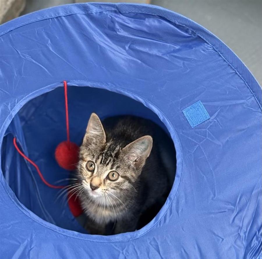 Meet Artemis, a cute little kitten with a heart full of love and curiosity. This endearing feline is at the very beginning of a life filled with exploration, warmth, and companionship. With big, curious eyes and a playful spirit, Artemis is on a quest to find a loving new family who can provide a nurturing environment.