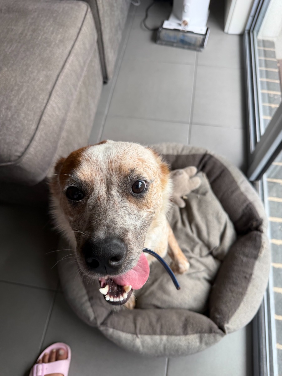 Freda has learnt very quickly the joys of a couch and being an inside dog who now has the choice of where she sleeps and plays. Her lead training is going well and she has also learnt how to sit nicely. Recall is still a work in progress, which is to be expected for previous life experience. She is no trouble in the house. When you move from room to room, Freda will quietly follow and settle on the floor nearby until you move again. She sleeps well at night on her bed and will wait until you get up in the morning before she moves herself.