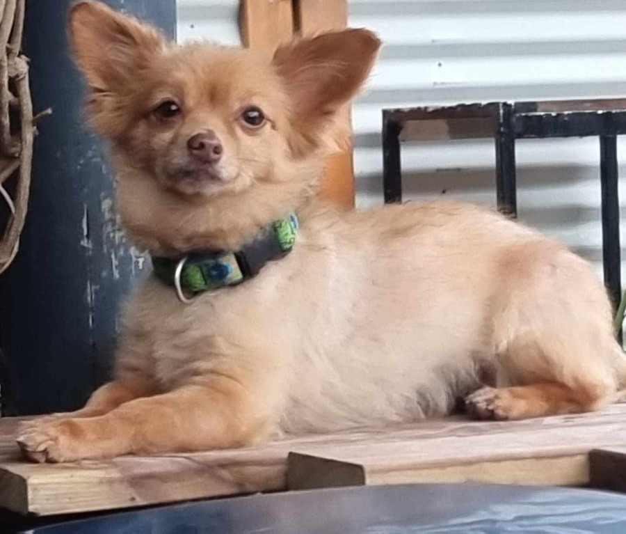 This gorgeous 8-year-old Chihuahua x Pomeranian is a devoted family girl who thrives on connection. From the moment she came into care, she made it clear she loves her people — quickly fixating on her main human and staying close by their