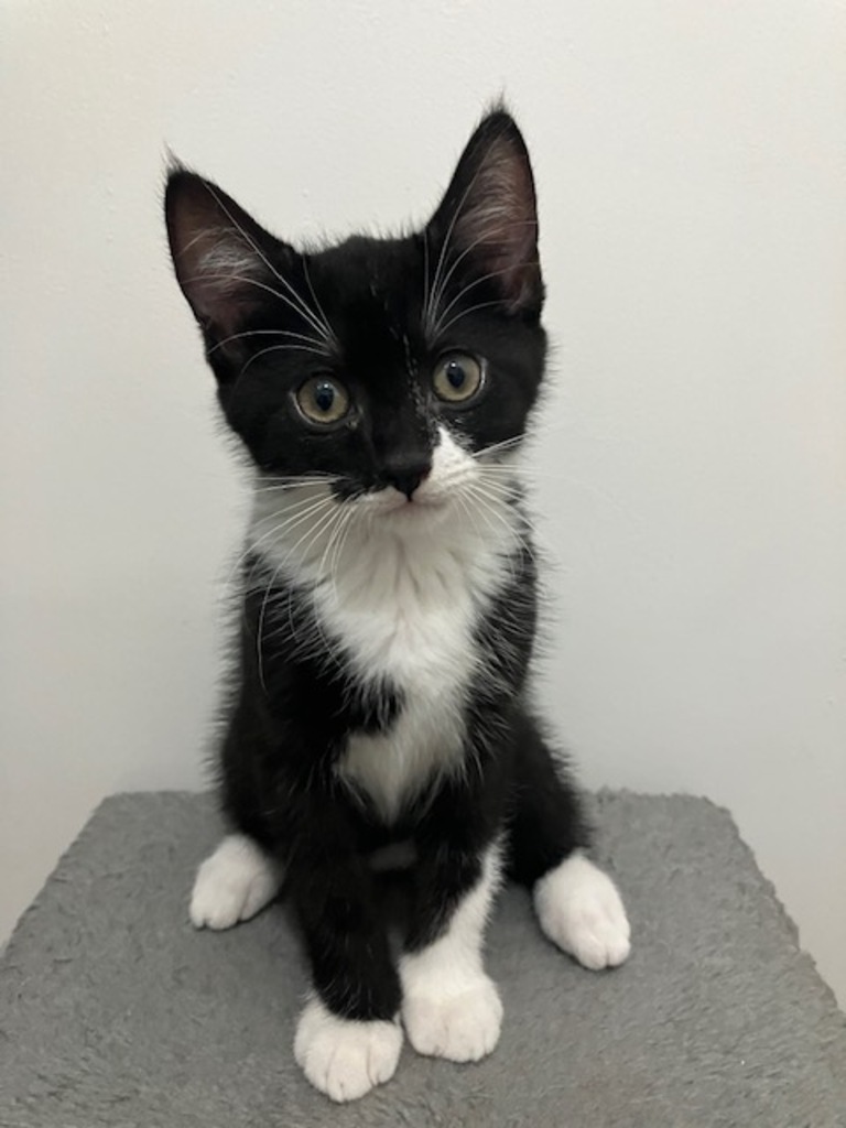 Mittens is a charming, spirited little lady who's eager to leap straight into your heart. Playful, confident, and full of personality, she loves to chat, explore, and show off her adorable streak of sass. As a typical active kitten, she'll thrive with towers to climb, scratchers to conquer, daily enrichment, and plenty of playtime. She's wonderfully social with other cats, having grown up with her littermates and done beautifully in multi‑cat housing and she'd be a great match for respectful kids of any age. Even first‑time adopters will find her an absolute joy. With her bright spirit and affectionate nature, Mittens is ready to become a delightful lifelong companion!