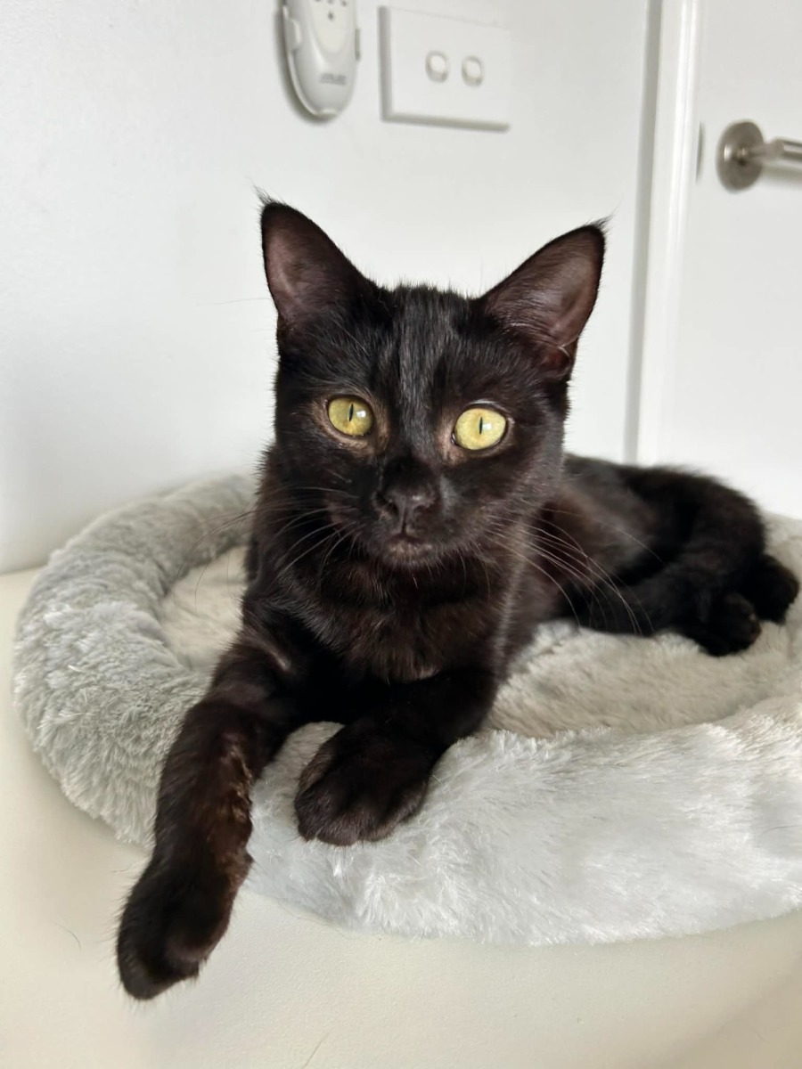 Ginnette is an adorable little black kitten with the softest fur and the sweetest personality to match. This tiny girl is full of curiosity and charm, always ready to explore her world with bright eyes and a gentle confidence.