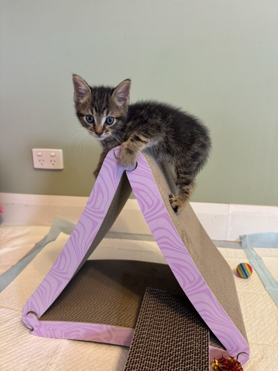 Oscar is very energetic and playful, often attempting to hold ribbons with his paws. He has a goofy and quirky personality and often jumps from random spots for no specific reason. Oscar is curious and building his confidence quickly. He loves investigating his new environment. I spend my morning and evenings playing but I love to snooze during hot days. I always run paws first into every situation, without always planning.
