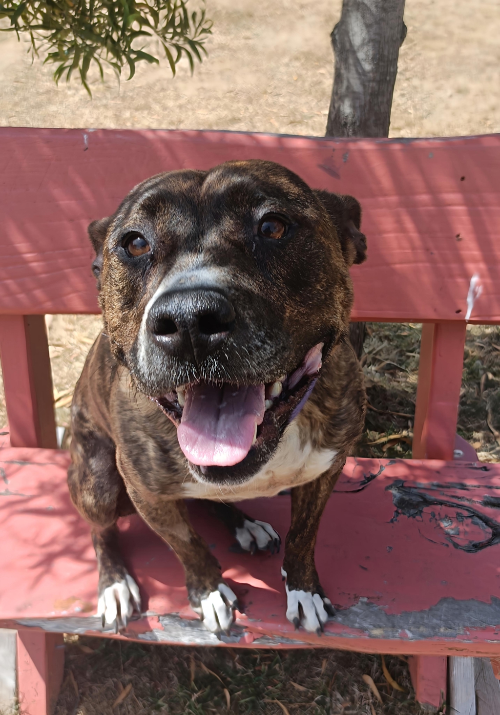 Meet Mary, an 8-year-old Staffordshire Terrier with a big heart and an even bigger love for life. Don't let her age fool you - Mary is energetic, enthusiastic, and greets each day as if the whole world has just opened up for her. She has a wonderfully loving nature and thrives on human connection, always ready to share affection and soak up attention. With better times clearly ahead of her, Mary is excited to embrace all the adventures still waiting her.
