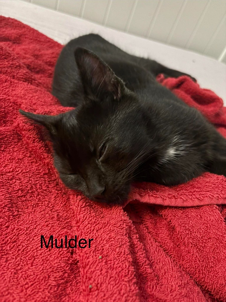 Meet Mulder, the kitten with a heart full of curiosity and a spirit poised for adventure. Though he may have begun life as a stray, Mulder is quickly adapting to the comforts of indoor life while retaining a touch of his intriguing wild side. This little guy is as inquisitive as they come, always eager to explore his surroundings with wide-eyed wonder.
