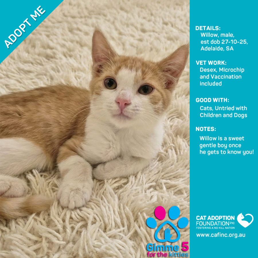 To adopt this kitty please contact Sayla on 0422 652 837 or email us at info@cafinc.org.au.
