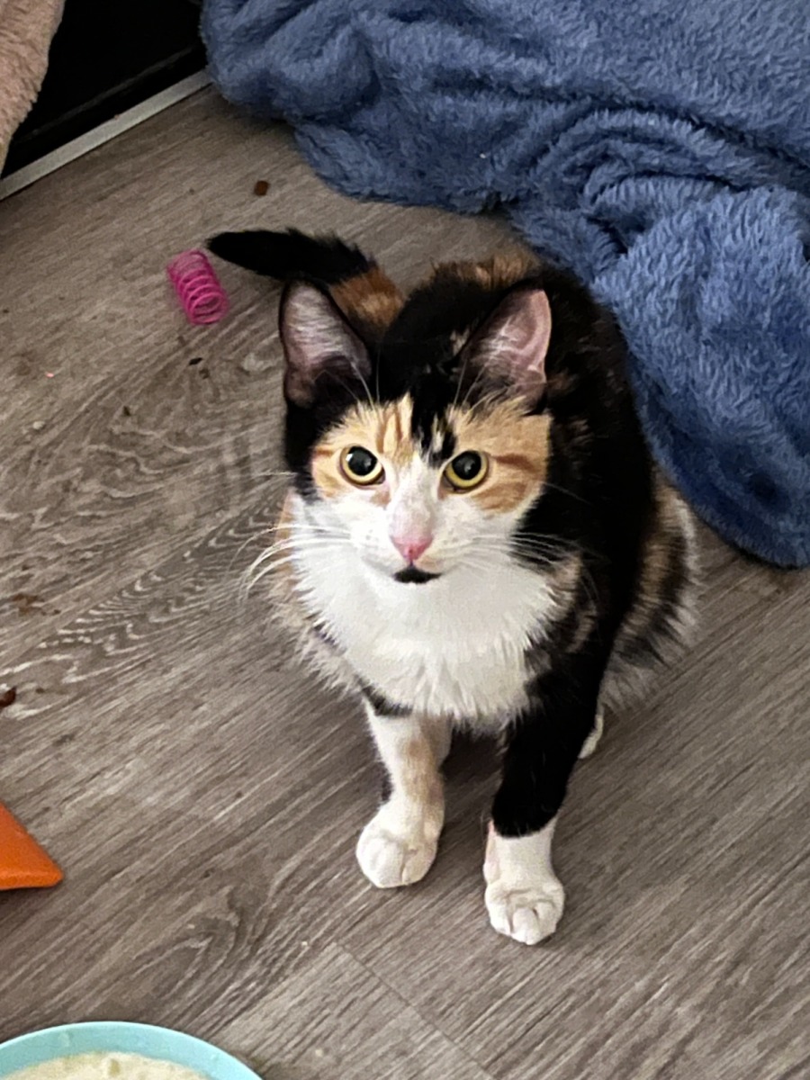 Penny is a purry and friendly girl who is just a big kitten herself and full of love and playfulness.