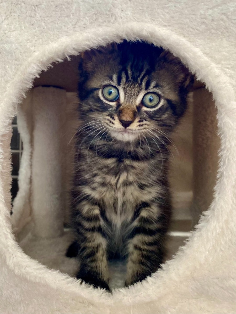 SABO is a 3-month-old fluffy tabby kitten who came into care a month ago with his two brothers and went straight into foster care.