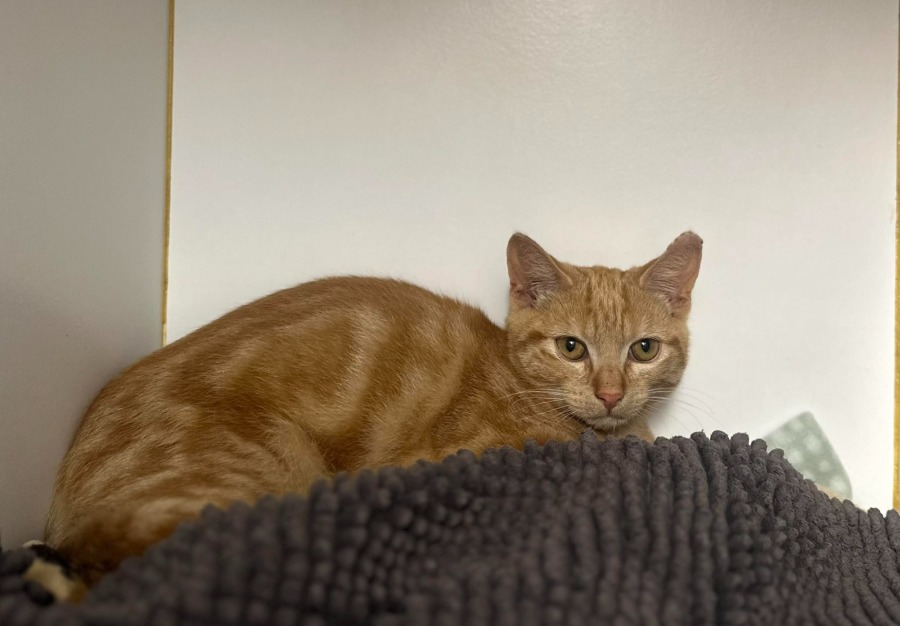 We believe Carrot Top isn’t too bothered by other cats so may do well on a home with a confident, friendly feline to help build his own confidence.