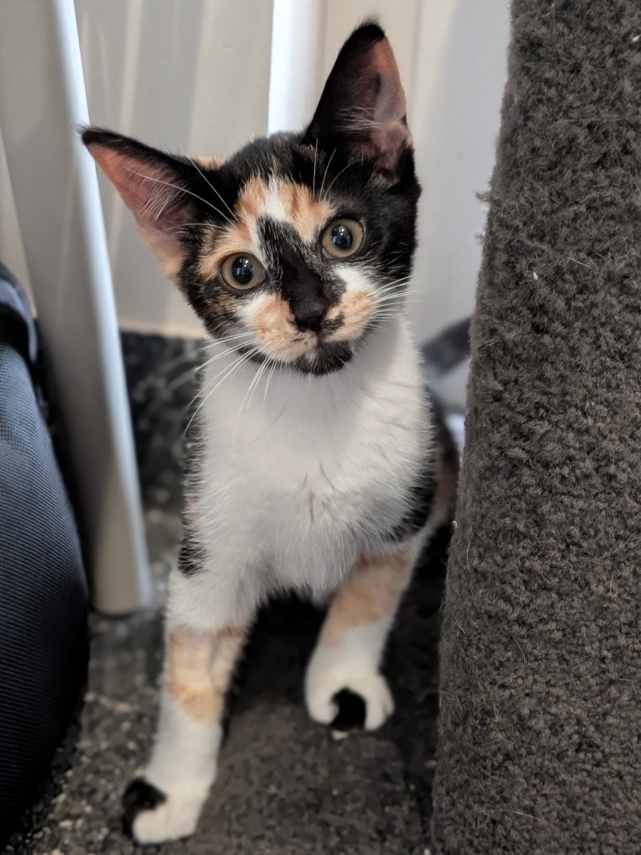 Meet Daisy, an adorable 11-week-old feline bursting with confidence and playfulness. She's eager to win your heart with her energetic antics and irresistible charm. Daisy is a bundle of joy, and her bold personality ensures she's the center of attention, eagerly engaging in whatever adventure the day holds.