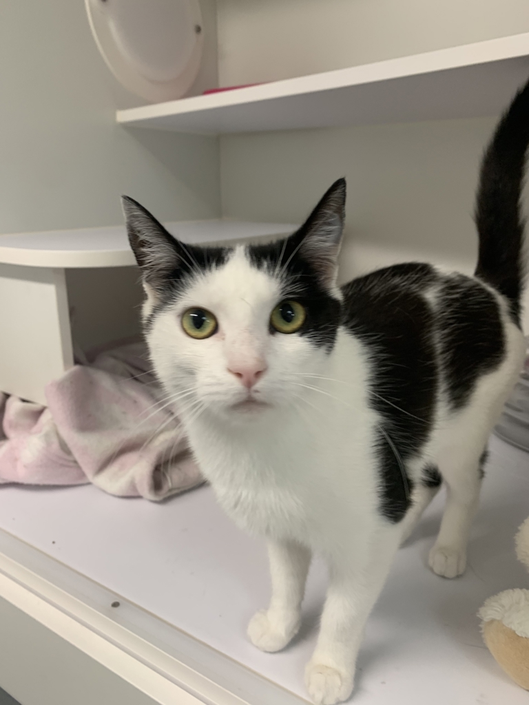 Genevieve is a beautiful black and white girl with a gentle soul and a heart that's just waiting to feel safe. She can be a little shy when you first meet her, but give her some time, patience, and a calm environment, and she'll slowly let her guard down.