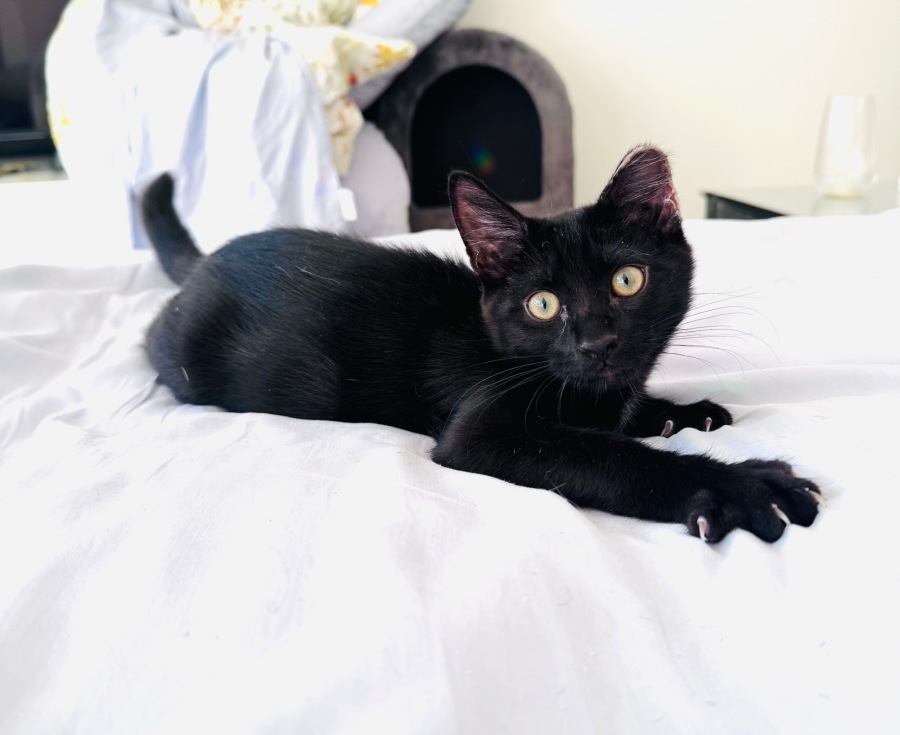 Pumpernickel is a calm, relaxed black kitty who loves nothing more than watching the world go by 🌍 When he’s not playfully tumbling around with his siblings 🐈⬛🐈⬛, you’ll find him snuggled close to his mama — a bond he holds very dear 💞