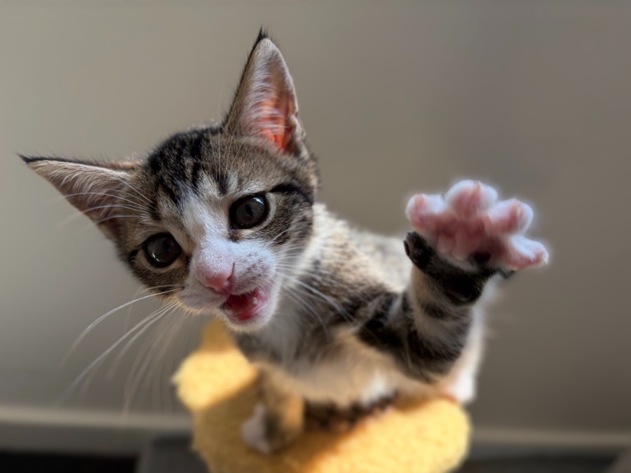Looking for a kitten who is 100% personality? Meet Eggnog (affectionately known as "Eggie"). She’s a high-energy, "Sweet n' Sassy" firecracker who is always the first one to lead the charge into a new room!