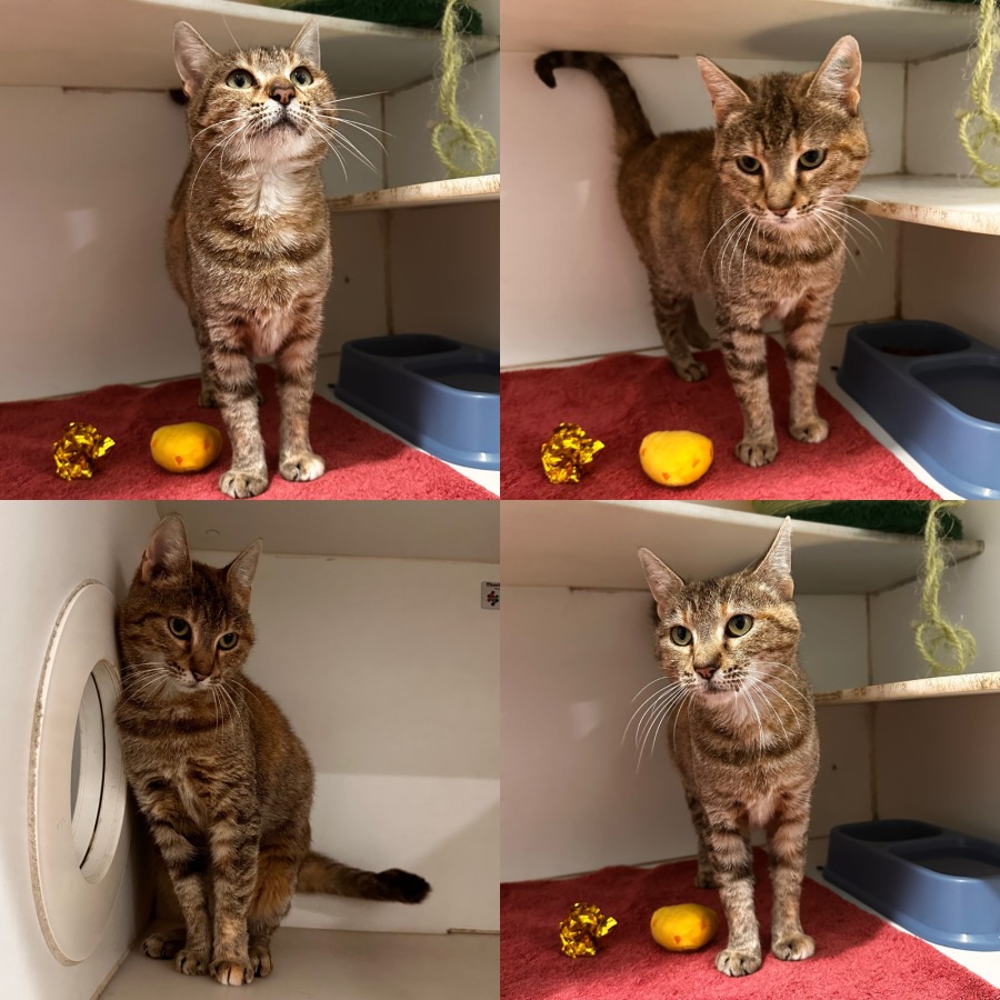 Rose is a beautiful short-haired tabby with stunning flecks of amber woven through her coat ✨🐯 — just as golden and gentle as her nature.