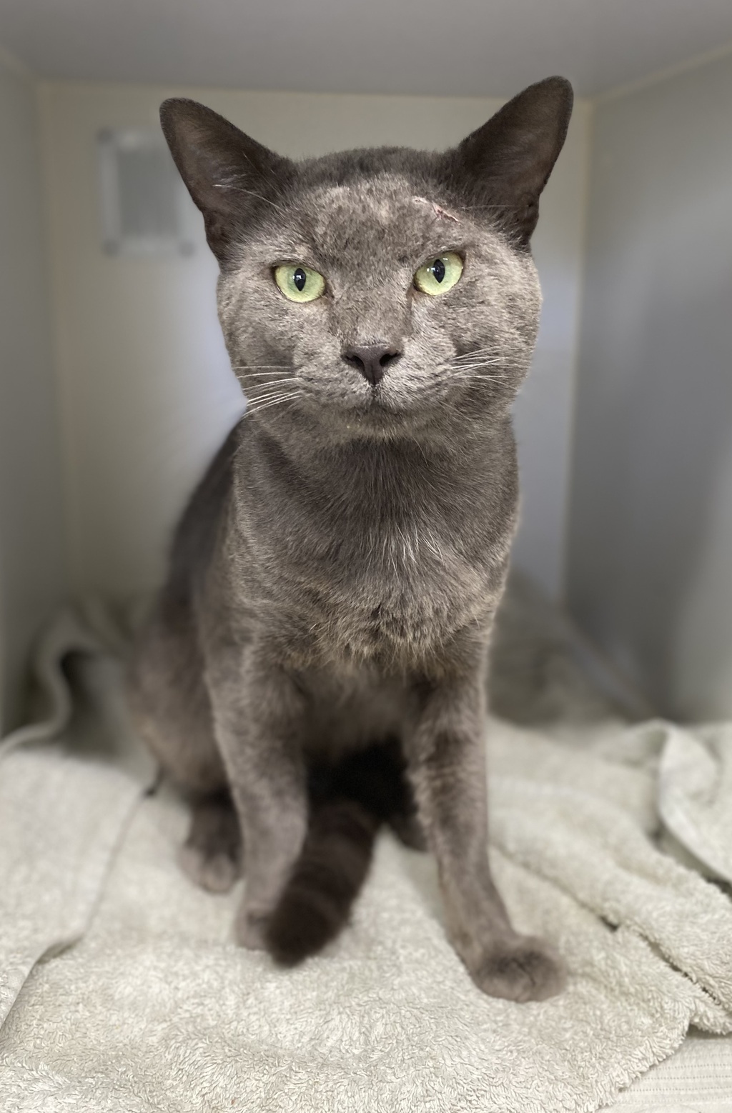 Meet Ramsey! With his soft soul and striking green eyes, Ramsey has a way of melting hearts in an instant. He's a gentle, easygoing boy who adores the simple pleasures in life, sunny windowsills, quiet moments, and of course, food. The true key to Ramsey's heart is through treats, especially anything puréed!