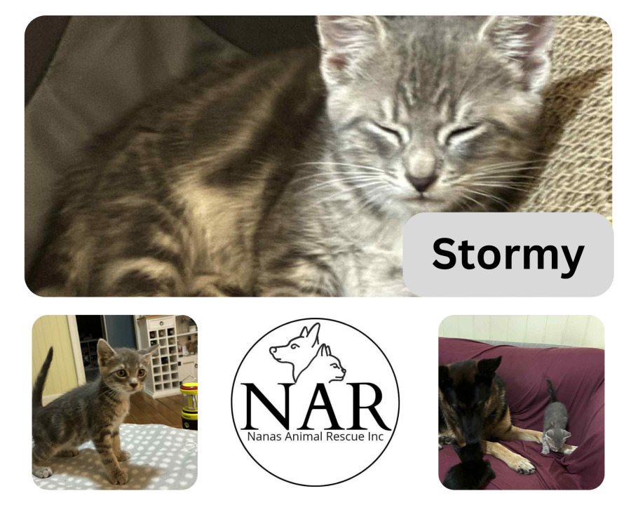 Hi, I’m Stormy! I’m a curious little explorer who loves being around people and soaking up all the attention. I may take a minute to warm up to new furry friends (even my foster brother!), but once I do, I settle in just fine. I’m independent, confident, and always ready to lead my own adventures—whether that’s investigating every corner of the house or lounging like royalty. I’d be perfectly happy as the king of the castle on my own, but I can also thrive with other pets once I get to know them. If you’re looking for a sweet, self-assured kitten with a sense of adventure, I might be your perfect match