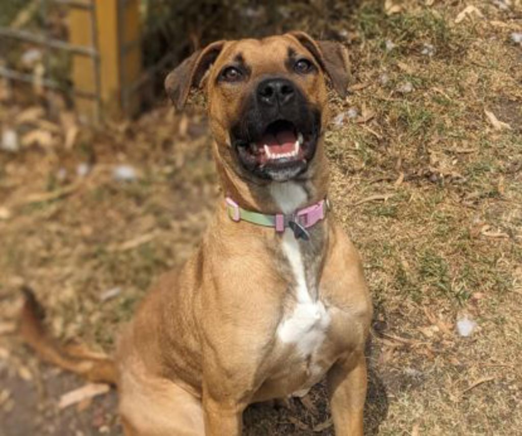 This young girl is full of energy and is still learning how to play politely with us humans. She just loves people so much that she can't resist jumping up to give the sweetest, slobbery face kisses! Because of her boisterous nature, she'll do best in a home with secondary school-aged kids or older while she continues to learn her manners. When it comes to other dogs, Lil Ted is quite nervous and doesn't feel comfortable sharing her space. She'll need to be the only dog in the home for now and avoid dog parks or busy off-leash areas.