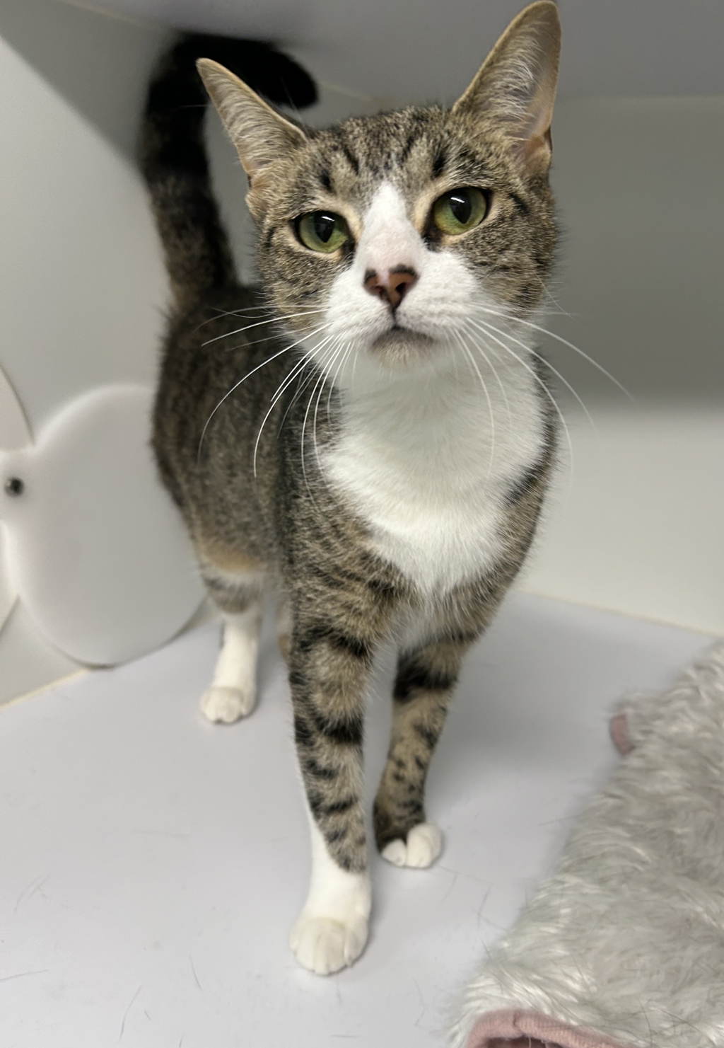 Boopy is a gorgeous tabby and white girl just over a year old, with a friendly nature and a playful spirit that's impossible to resist. She's at a wonderful age where her personality is really shining through, and she's more than ready to share it with a family of her own.