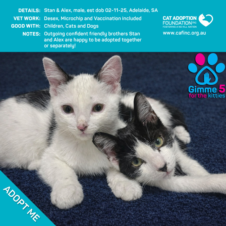 Donate to Stan & Alex at Cat Adoption Foundation Incorporated via Shout