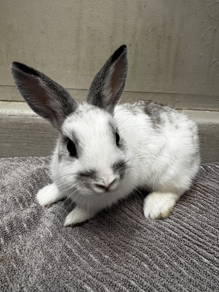 Sugarplum is a sweet 3-month-old baby bunny who is still discovering the world around her. As a young rabbit, she's naturally a little shy and prefers to take her time observing new sights and sounds before hopping in. With gentle encouragement and patience, she's sure to blossom into a confident and loving companion.